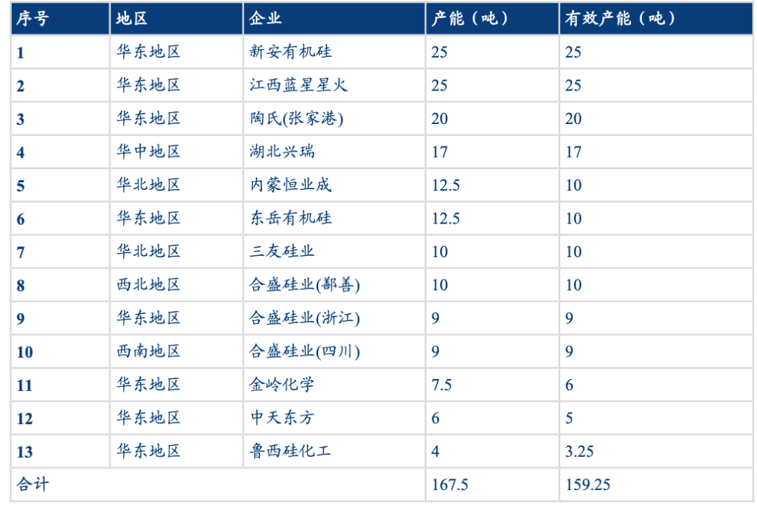 2020年國(guó)內(nèi)有機(jī)硅產(chǎn)能: