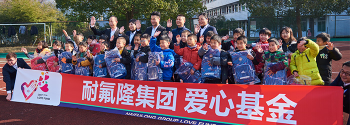 為積極履行企業(yè)社會責任,關注支持貧困地區(qū)教育事業(yè)發(fā)展,2020年12月25日上午8時許,耐氟隆集團有限公司總經(jīng)理率領公司相關部門負責人一行×人來到溫州永嘉縣鶴盛鎮(zhèn)嶺頭中心小學開展愛心捐贈活動。